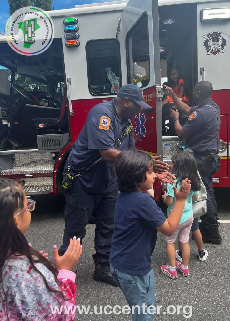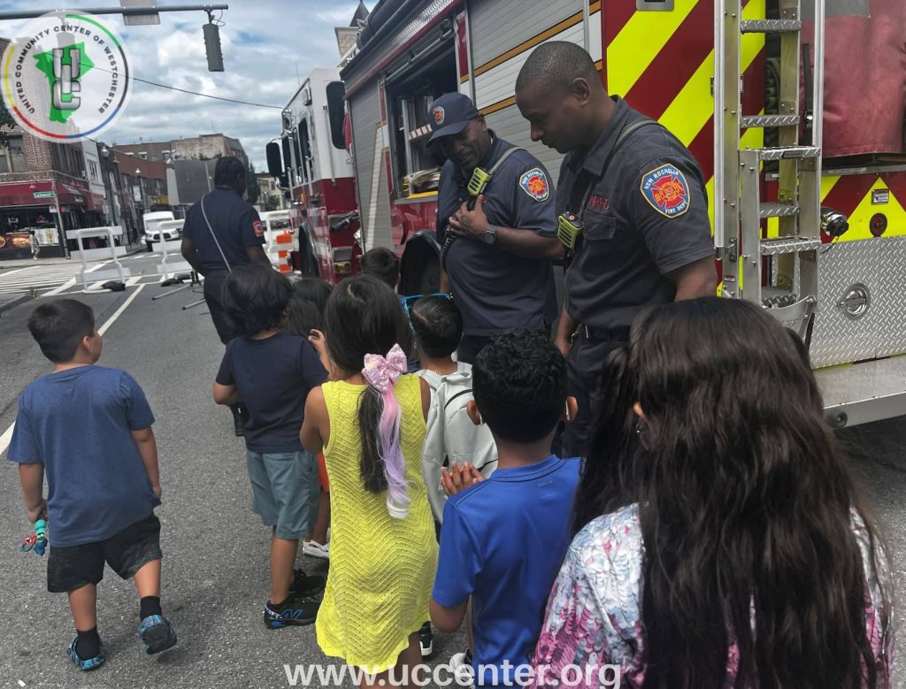 Uno de los momentos más especiales del campamento tuvo lugar el 18 de agosto, cuando héroes locales visitaron a los niños para brindarles una experiencia inolvidable. El Departamento de Bomberos de New Rochelle compartió enseñanzas sobre el valor del servicio y el trabajo en equipo, mientras que la Policía del Estado de Nueva York inspiró a los pequeños con su compromiso y dedicación.
